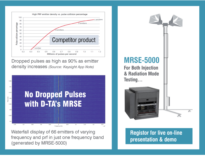 To find out more, including how to test Radar, ELINT/ESM & EA systems in both injection (indoor) and radiation (open-air) modes, click EW Emulation tab on our home page (www.d-ta.com)